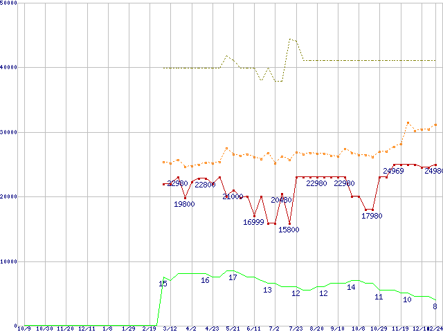 | 2.5インチSSD 128GB (128GB,MLC)の価格推移 |