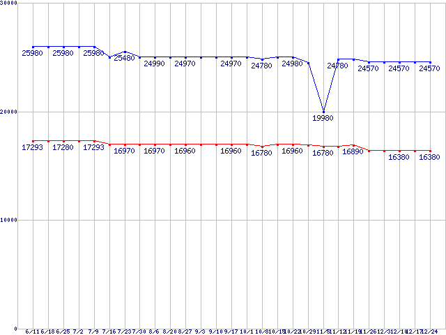 | WD VelociRaptor (10000rpm,3Gb/s,16MB)の最安値推移 |