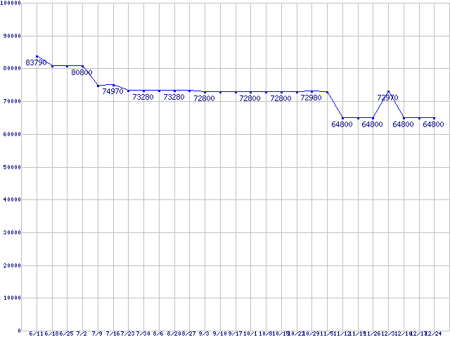 | X25-E Extreme SATA SSD (SSD,3Gb/s,2.5インチ,リード250MB/s・ライト170MB/s)の最安値推移 |