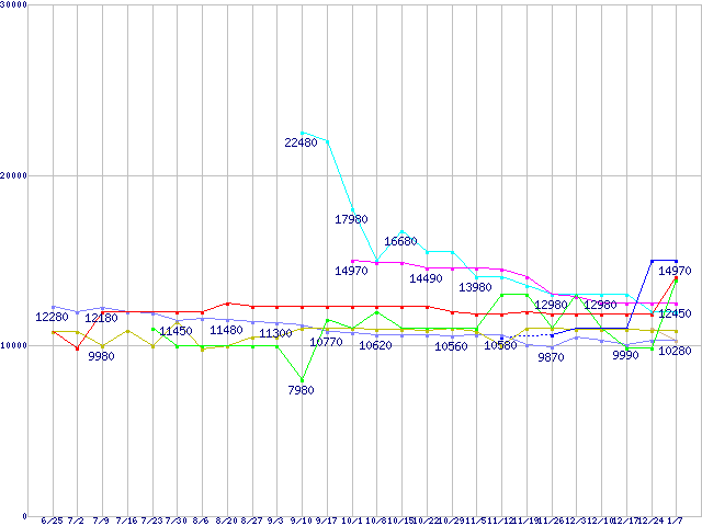 | ※製品名をクリックすると個別のグラフを表示します ※点線部は販売店が確認できなかった、または調査データがないことを示します | |