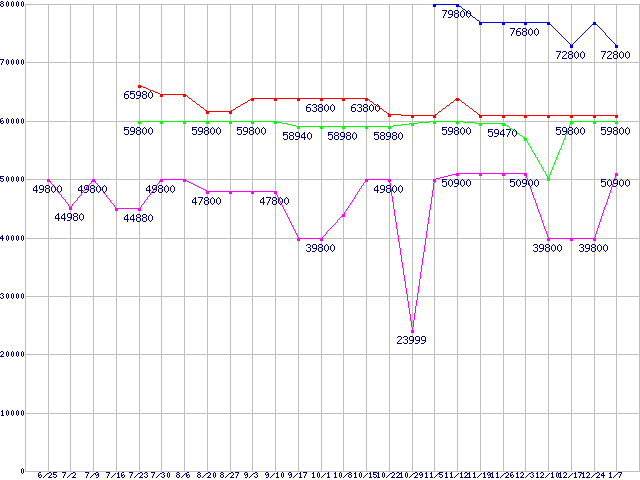 | ※製品名をクリックすると個別のグラフを表示します ※点線部は販売店が確認できなかった、または調査データがないことを示します | |