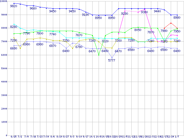 | ※製品名をクリックすると個別のグラフを表示します ※点線部は販売店が確認できなかった、または調査データがないことを示します | |