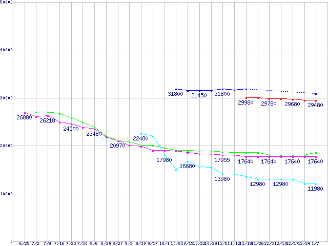 | ※製品名をクリックすると個別のグラフを表示します ※点線部は販売店が確認できなかった、または調査データがないことを示します | |