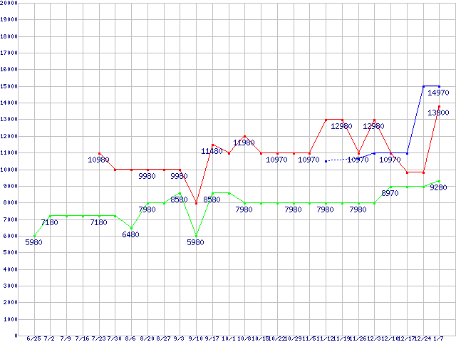 | ※製品名をクリックすると個別のグラフを表示します ※点線部は販売店が確認できなかった、または調査データがないことを示します | |