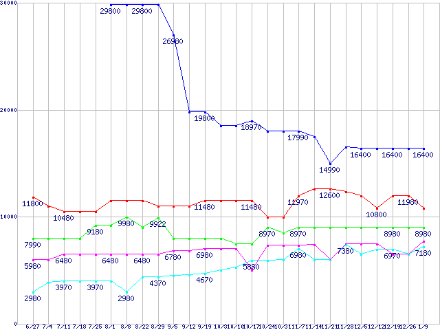 | ※製品名をクリックすると個別のグラフを表示します ※点線部は販売店が確認できなかった、または調査データがないことを示します | |