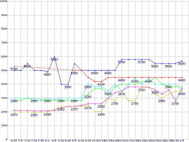 | ※製品名をクリックすると個別のグラフを表示します ※点線部は販売店が確認できなかった、または調査データがないことを示します | |