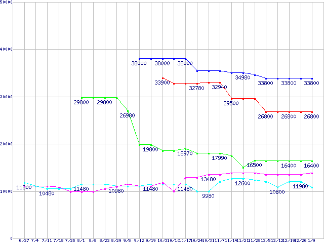 | ※製品名をクリックすると個別のグラフを表示します ※点線部は販売店が確認できなかった、または調査データがないことを示します | |