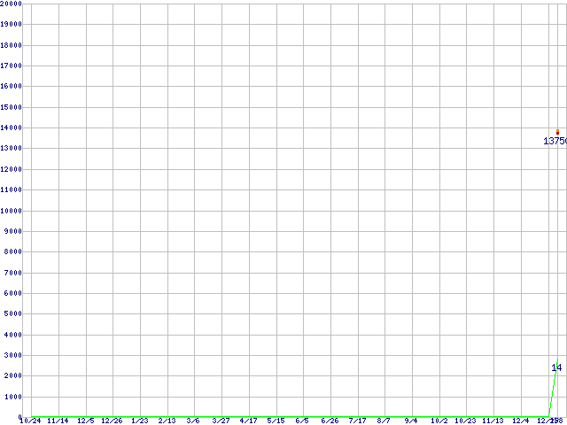Core i3-540 (3.06GHz)の価格推移↑前グラフ↓次グラフ(2008年10月24日〜2010年1月8日)※このグラフは過去のデータも税率5%相当に調整した税込み相当額のグラフです。 税率変更や、総額表示方式導入(2004年4月)の影響は除いています。●関連グラフCPU主要製品の最安値推移CPU主要製品(最安値1万円〜2万円未満)の最安値推移Intel系CPUの最安値推移LGA1156 (L3キャッシュ4MB,Dual Core,GPU内蔵,Hyper-Threading,TDP 73〜87W)の最安値推移●凡例最安値(点線部は販売店未確認または未調査)平均値最高値ショップ数
