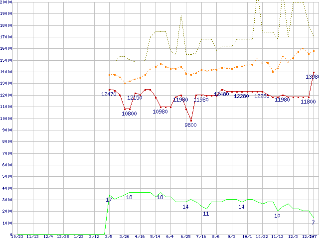 | 2.5インチSSD 64GB (64GB,MLC)の価格推移 |