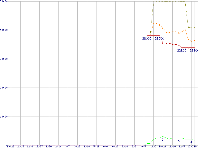 PC3-10600 4GB×2枚組みセットの価格推移↑前グラフ↓次グラフ(2008年10月25日〜2010年1月9日)※このグラフは過去のデータも税率5%相当に調整した税込み相当額のグラフです。 税率変更や、総額表示方式導入(2004年4月)の影響は除いています。●関連グラフメモリ主要製品の最安値推移メモリ主要製品(最安値1万円以上)の最安値推移PC3-10600(DDR3-1333) DDR3 SDRAM DIMMの最安値推移●凡例最安値(点線部は販売店未確認または未調査)平均値最高値ショップ数