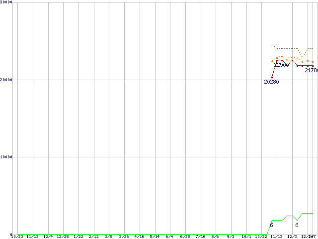 | 2.5インチSSD(東芝製コントローラ) 64GB (64GB,MLC)の価格推移 |