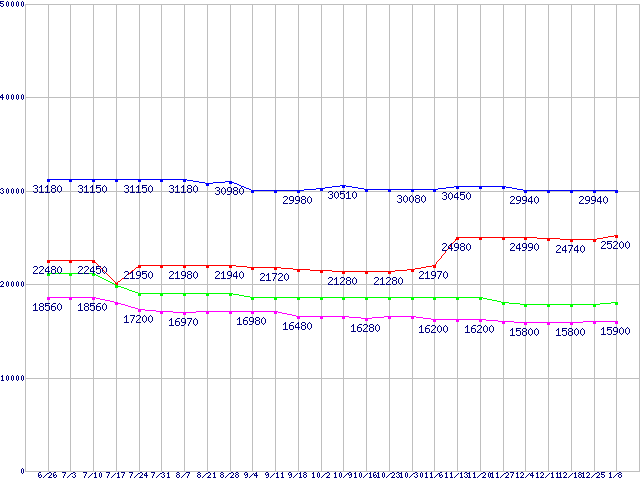 | ※製品名をクリックすると個別のグラフを表示します ※点線部は販売店が確認できなかった、または調査データがないことを示します | |