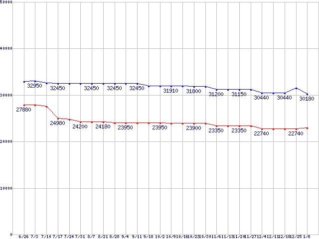 | LGA775 (FSB 1333MHz,Quad Core,TDP 65W)の最安値推移 |