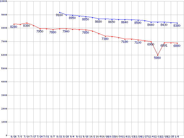 | LGA775 (FSB 1066MHz,Dual Core,TDP 65W)の最安値推移 |