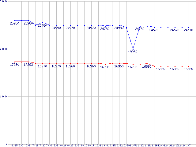 | WD VelociRaptor (10000rpm,3Gb/s,16MB)の最安値推移 |