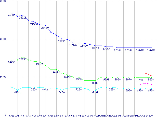 | WD Caviar Green (3Gb/s)の最安値推移 |