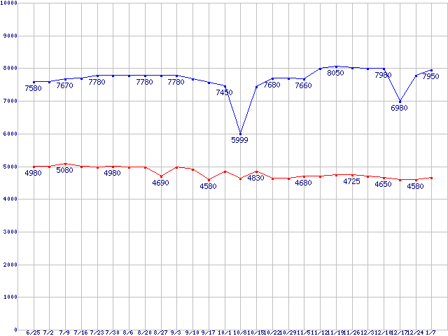 | Barracuda 7200.12 (7200rpm,3Gb/s)の最安値推移 |