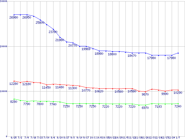 | Barracuda LP (5900rpm,3Gb/s)の最安値推移 |