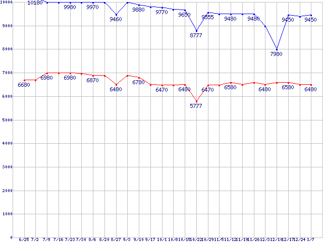 | ※製品名をクリックすると個別のグラフを表示します ※点線部は販売店が確認できなかった、または調査データがないことを示します |