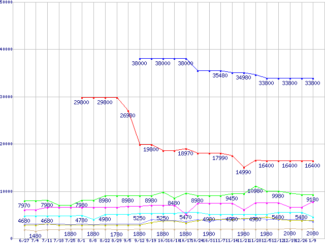 | ※製品名をクリックすると個別のグラフを表示します ※点線部は販売店が確認できなかった、または調査データがないことを示します | |