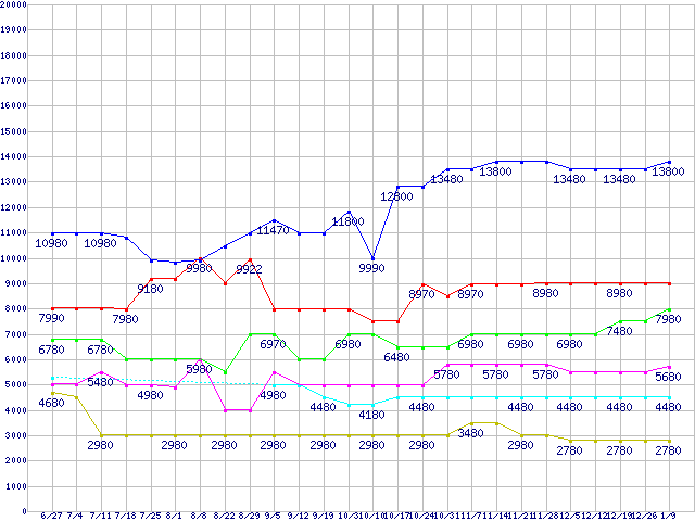 | ※製品名をクリックすると個別のグラフを表示します ※点線部は販売店が確認できなかった、または調査データがないことを示します | |