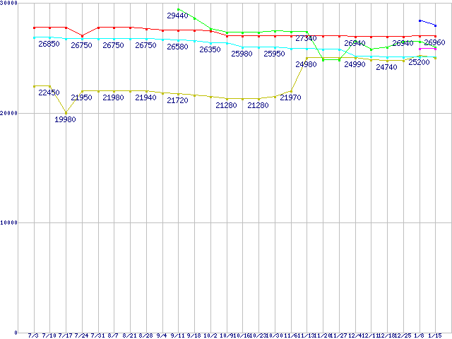 | CPU主要製品(最安値2万円〜3万円未満)の最安値推移 |