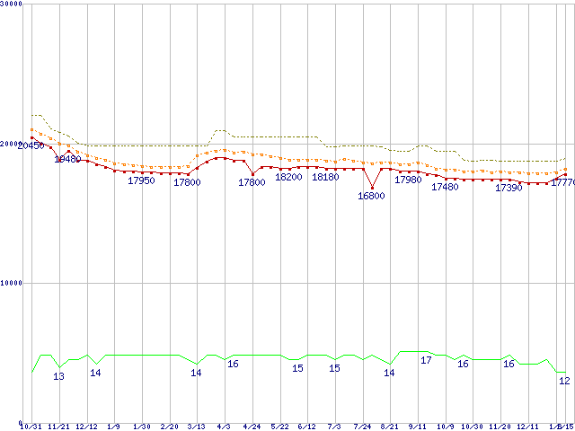 | Core 2 Duo E8500 (3.16GHz,L2 6MB)の価格推移 |