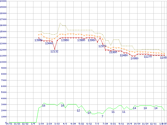 | Core 2 Duo E7500 (2.93GHz,L2 3MB)の価格推移 |