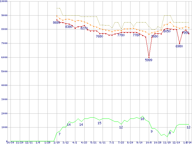 | ST31000528AS (1TB,32MB)の価格推移 |