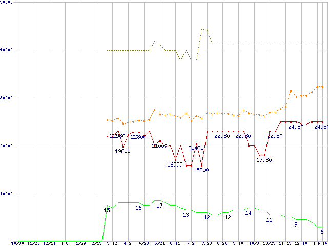 | 2.5インチSSD 128GB (128GB,MLC)の価格推移 |