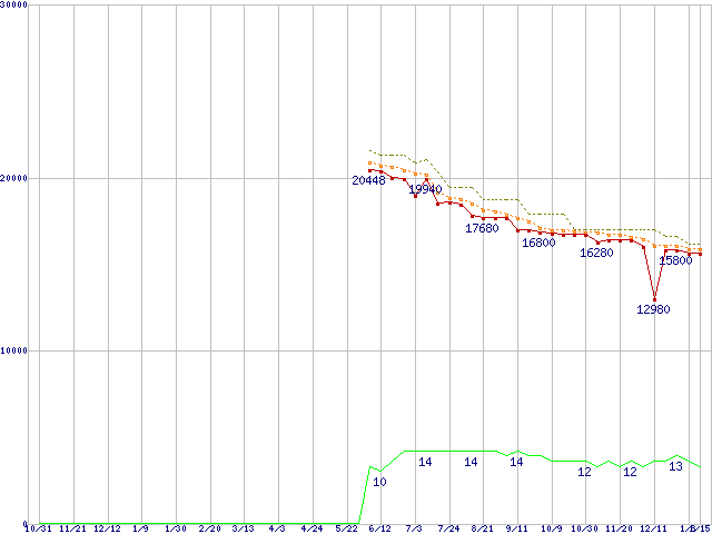 | Phenom II X4 905e (2.5GHz,L2 512KB×4,L3 6MB,TDP 65W)の価格推移 |