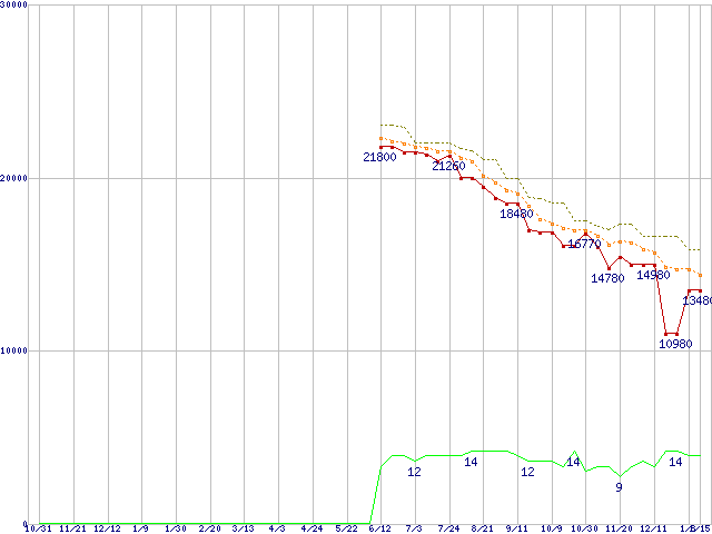 | Phenom II X4 945 (3.0GHz,L2 512KB×4,L3 6MB,TDP 95W)の価格推移 |