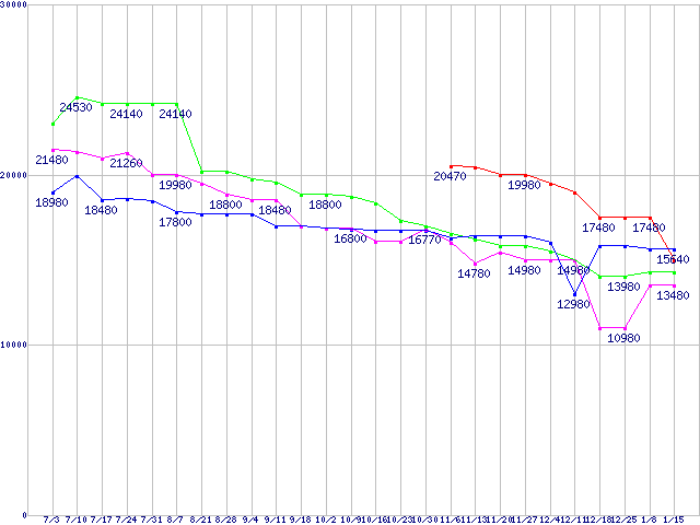 | Socket AM3 (HyperTransport 3.0,Quad Core Core)の最安値推移 |