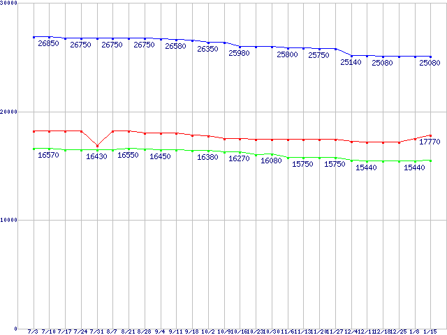 | LGA775 (FSB 1333MHz,Dual Core,TDP 65W)の最安値推移 |