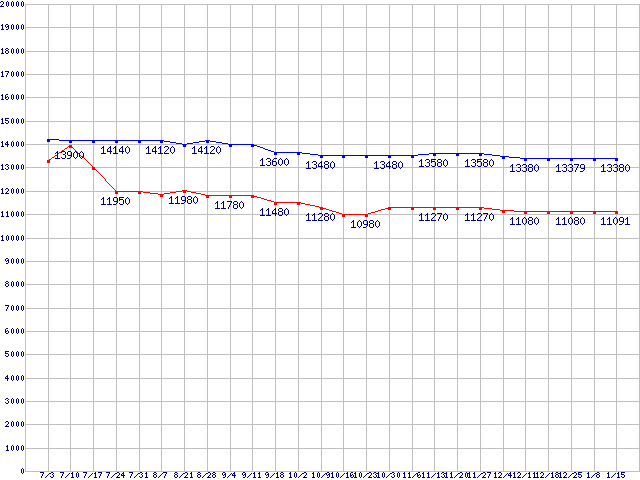 LGA775 (FSB 1066MHz,Dual Core,TDP 65W)の最安値推移