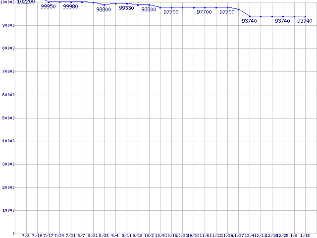 | LGA1366 (QPI 6.4GT/s,L3キャッシュ8MB,Quad Core,Hyper-Threading,TDP 130W)の最安値推移 |