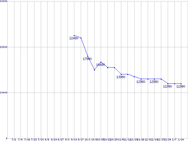 | Deskstar 7K2000 (7200rpm,3Gb/s)の最安値推移 |