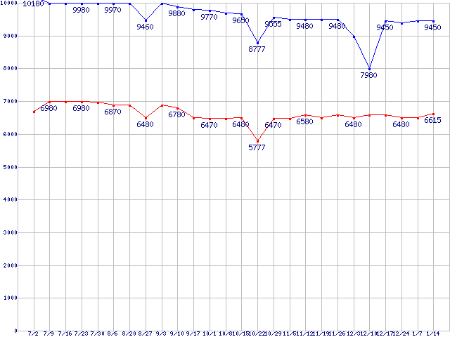 | ※製品名をクリックすると個別のグラフを表示します ※点線部は販売店が確認できなかった、または調査データがないことを示します |
