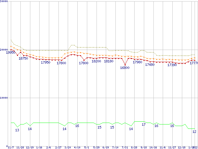 | Core 2 Duo E8500 (3.16GHz,L2 6MB)の価格推移 |