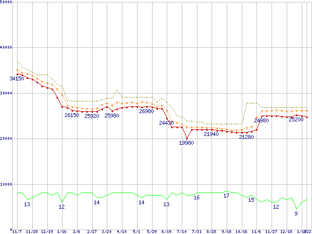 | Core 2 Quad Q9550 (2.83GHz,L2 6MB×2)の価格推移 |