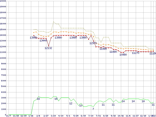 | Core 2 Duo E7500 (2.93GHz,L2 3MB)の価格推移 |