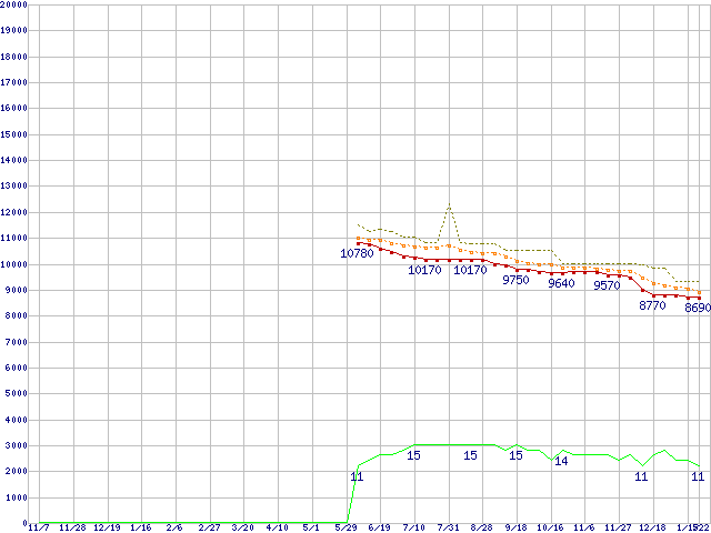 | Phenom II X2 550 Black Edition (3.1GHz,L2 512KB×2,L3 6MB)の価格推移 |