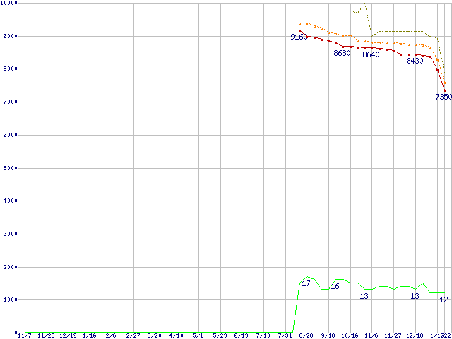 | Pentium E6500 (2.93GHz,L2 2MB)の価格推移 |