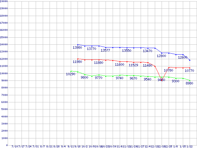 | ※製品名をクリックすると個別のグラフを表示します ※点線部は販売店が確認できなかった、または調査データがないことを示します | |