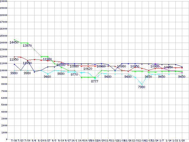 | ※製品名をクリックすると個別のグラフを表示します ※点線部は販売店が確認できなかった、または調査データがないことを示します | |