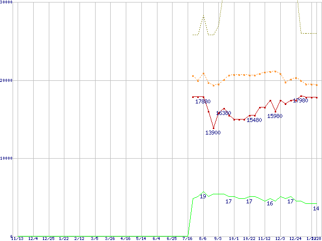 | 2.5インチSSD(INDILINX製コントローラ) 64GB (64GB,MLC)の価格推移 |