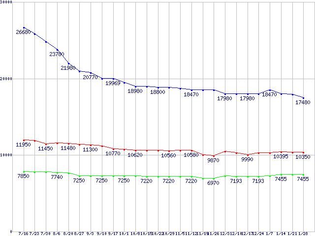 | Barracuda LP (5900rpm,3Gb/s)の最安値推移 |