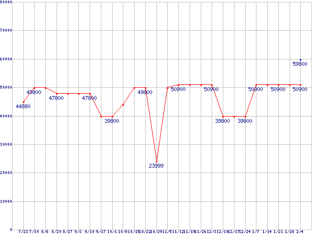 | HDD 250〜300GB未満の最安値推移 |