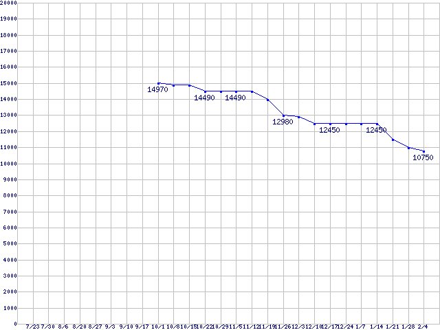 | HDD 600〜750GB未満の最安値推移 |