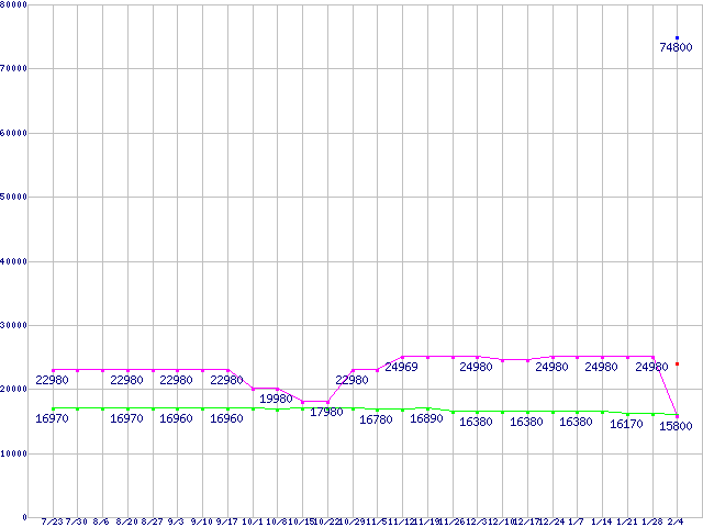 | HDD 100〜160GB未満の最安値推移 |